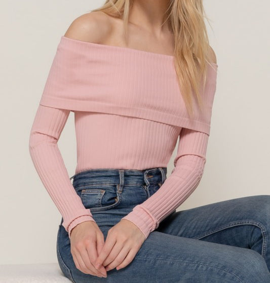 ALL YOU OFF THE SHOULDER TOP- SAND PINK